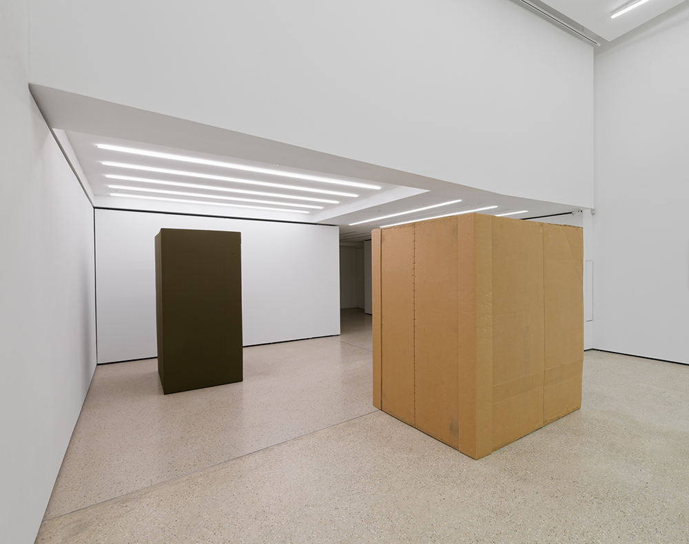 Brown Boxes (Stall), 2021 . Carboards, satin acrylic paint and enamel, 161 x 74,5 x 64 cm each